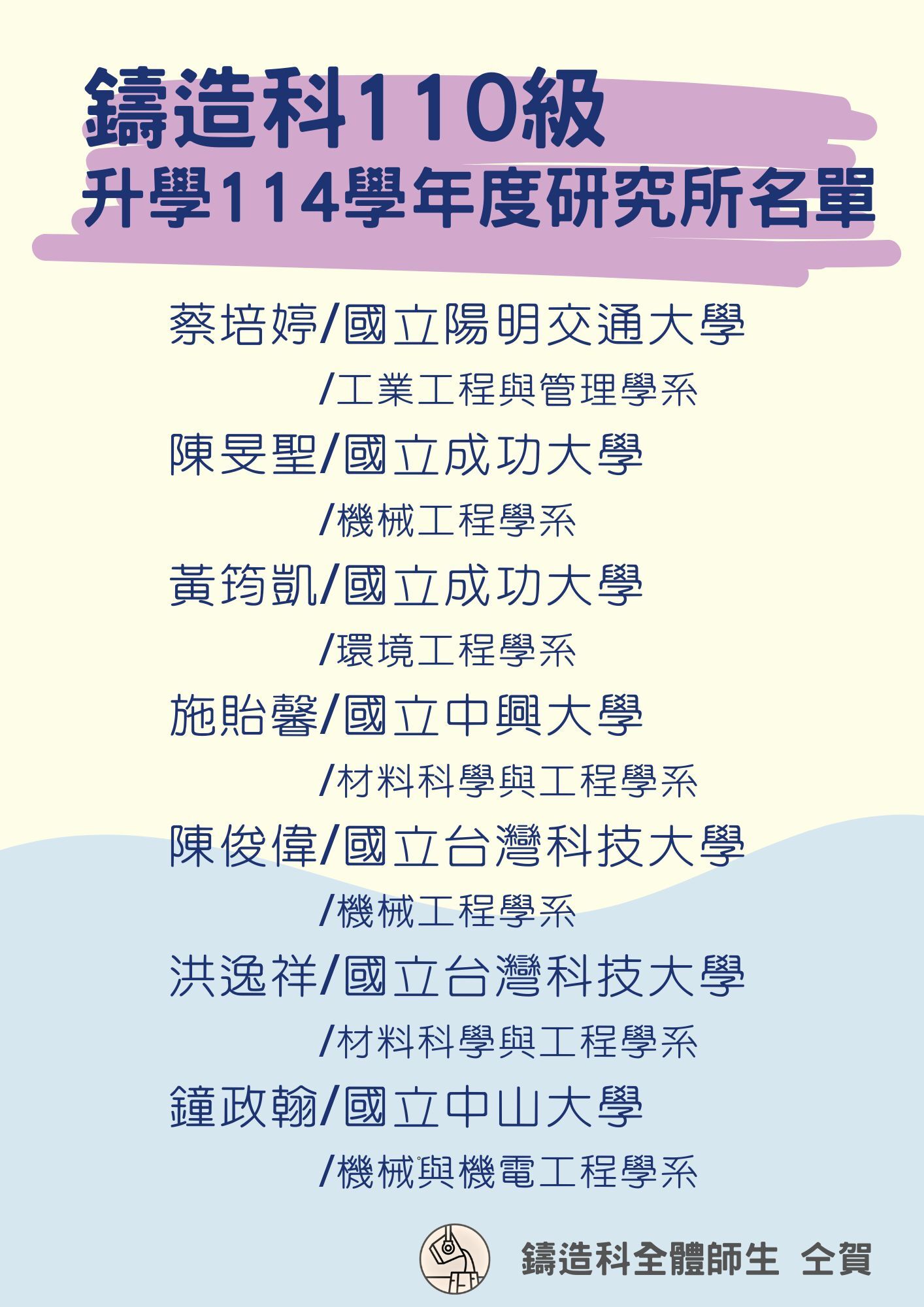 本科110級校友 升學114學年度研究所名單